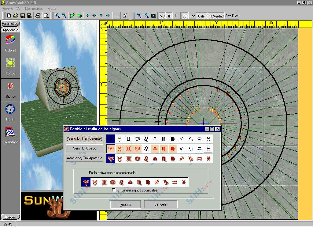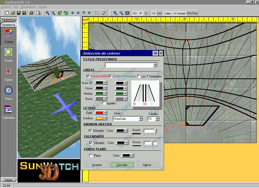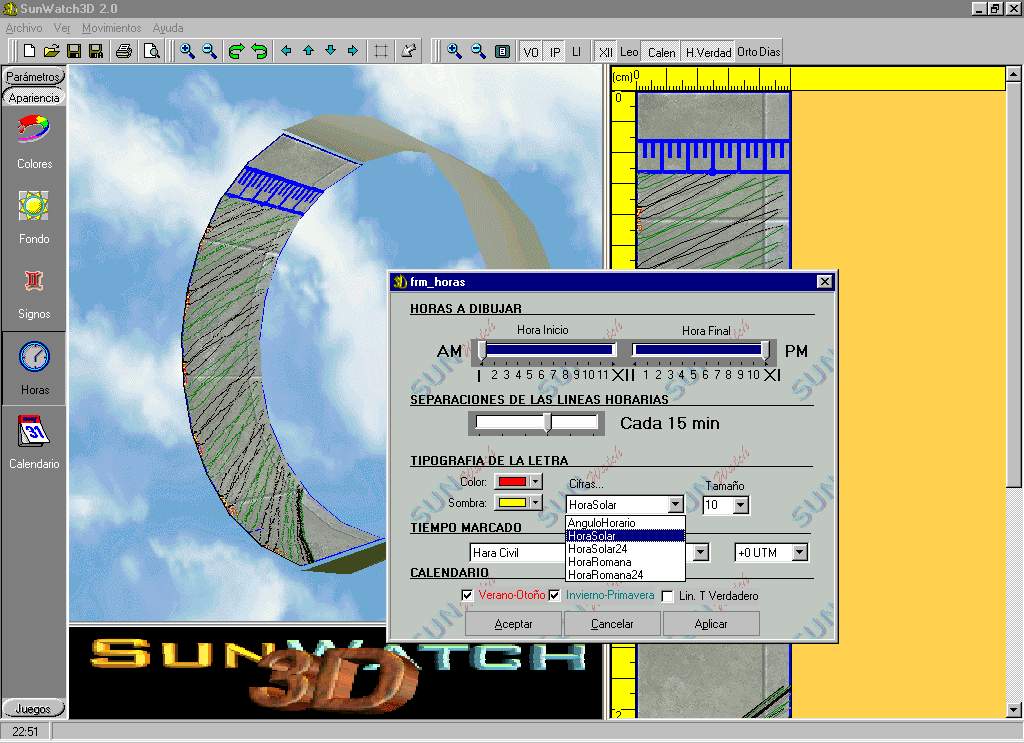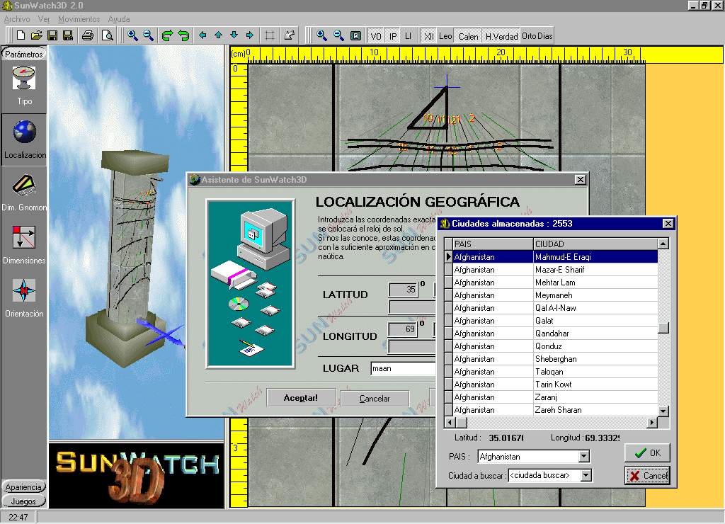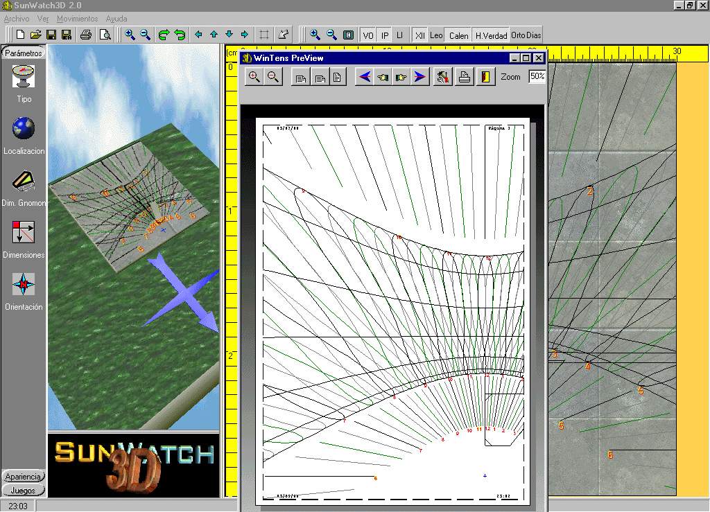 In order to be made an idea of the capacities of the new version of SUNWATCH3D 2.0 they are shown some captures of the program in operation here. In order to see an amplification of the same you can press on them.